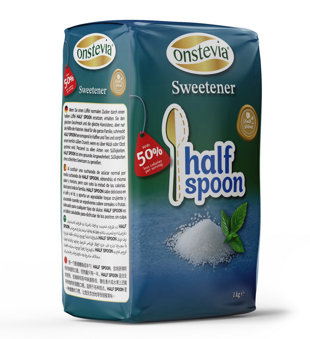 - By replacing a spoonful of regular sugar with half spoon of this product, you’ll get the same taste and texture like sugar, but only half of the calories (50% calories per portion).
